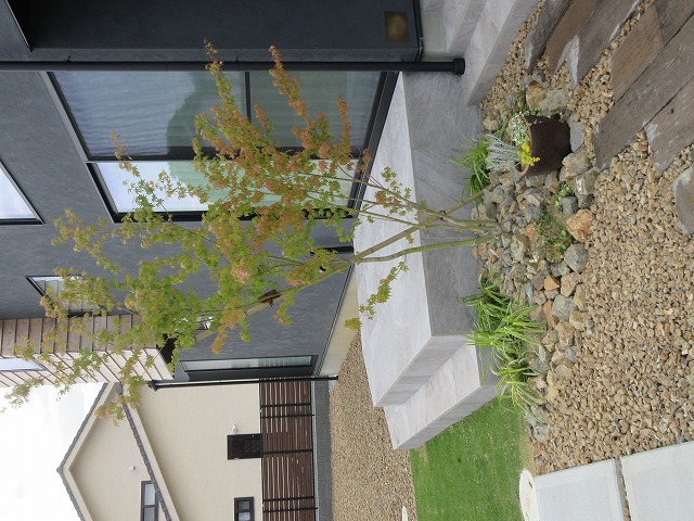 植栽周りは三ヶ日石と大粒のチャート石(岐阜砕石)を使用しました。