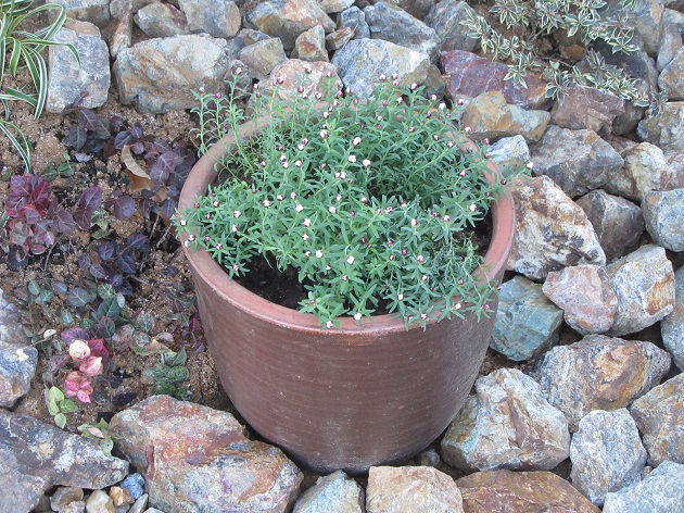 プランターの中はこれからの開花が楽しみな「花かんざし」を入れました。